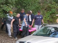 - Bára si hned v pondělí vykloubila koleno tak, že byla odvezena do Plzně, tam jí ho dali zpět a pak do Chomutova, kde ji ve středu odoperovaly úlomky kostí a druhý týden ve čtvrtek už jí, sice o berlích, opět přivítali naši táborníci v Kožlanech.