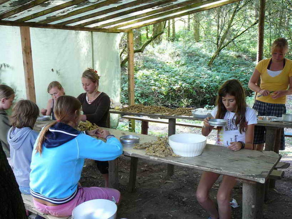- José vymyslel úkol k prostřednímu táboráku, že rodinné klany účastníků musí předvést scénku či něco podobného – výborná zábava a hodně legrace. Voda, která teče vždy volně a neřízeně z Pahorku tentokráte tekla řízeně ve dřevěných korýtkách.