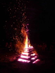 - José vymyslel úkol k prostřednímu táboráku, že rodinné klany účastníků musí předvést scénku či něco podobného – výborná zábava a hodně legrace. Voda, která teče vždy volně a neřízeně z Pahorku tentokráte tekla řízeně ve dřevěných korýtkách.